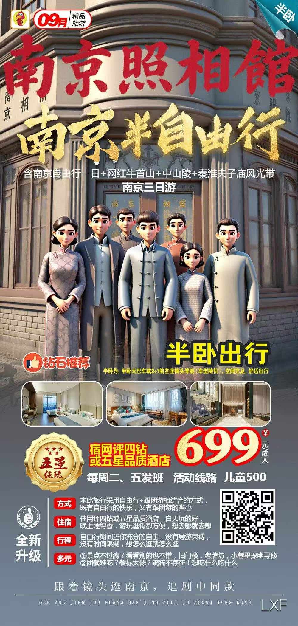 半卧-南京自由行大巴三日游 2025-9-23 本文被阅读 83 次