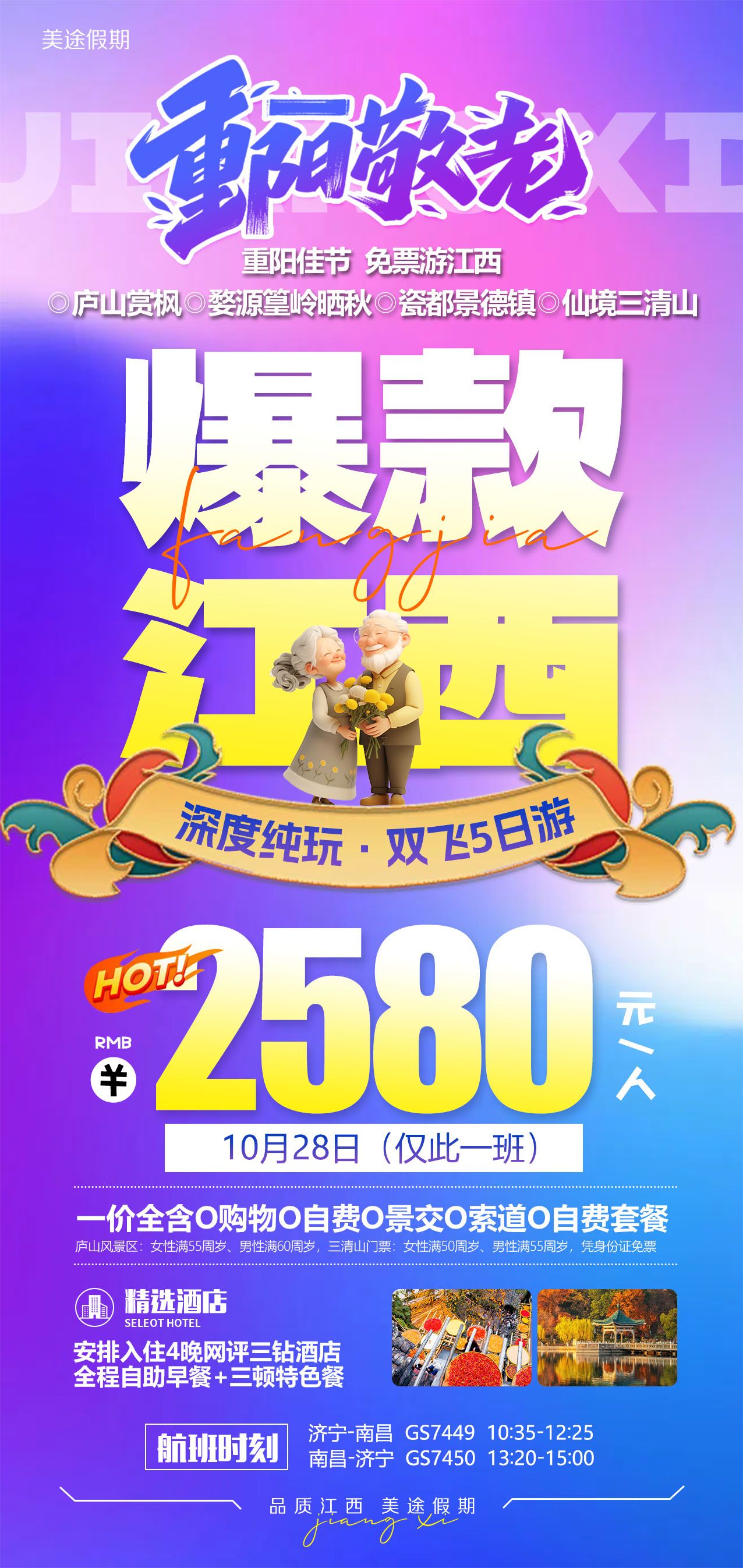 济宁直飞江西重阳节免票活动 2025-10-17 本文被阅读 11 次