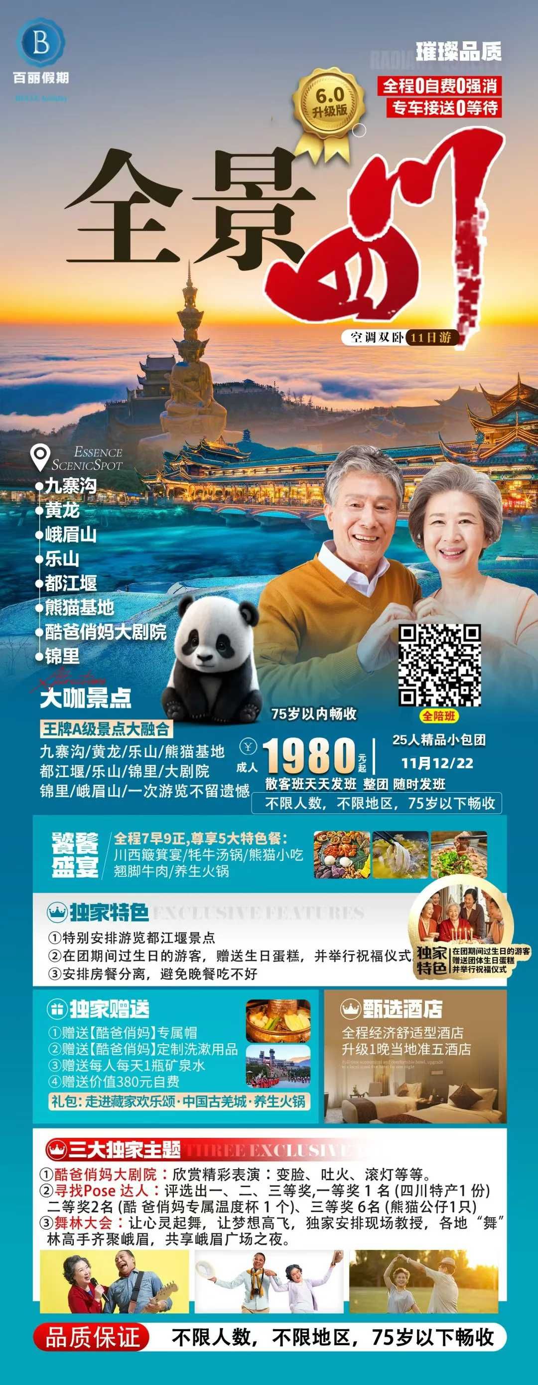 四川全景全新升级双卧11日游