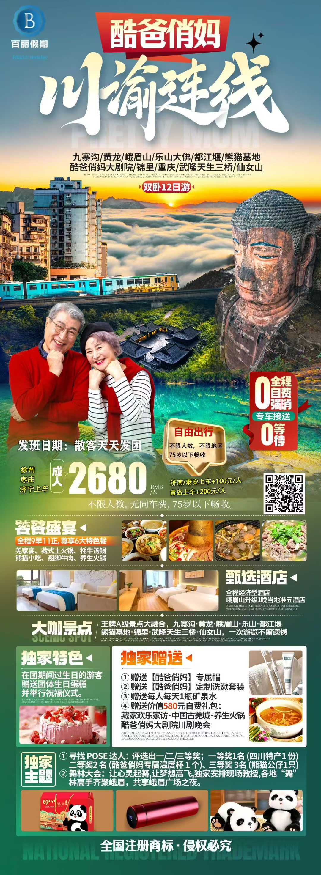 酷爸俏妈川渝连线 双卧12日游
