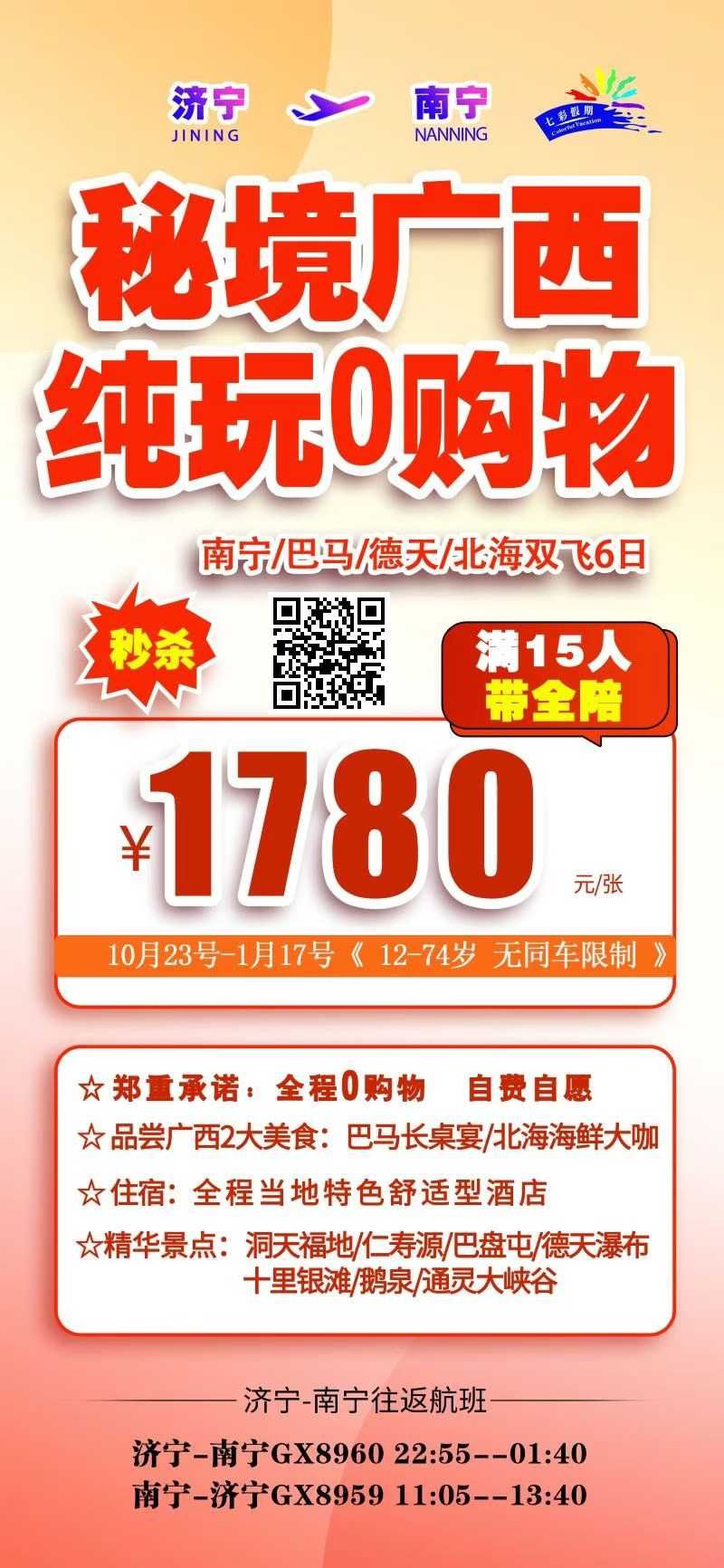 济宁直飞南宁桂西南双飞六日游 2025-11-8 本文被阅读 10 次