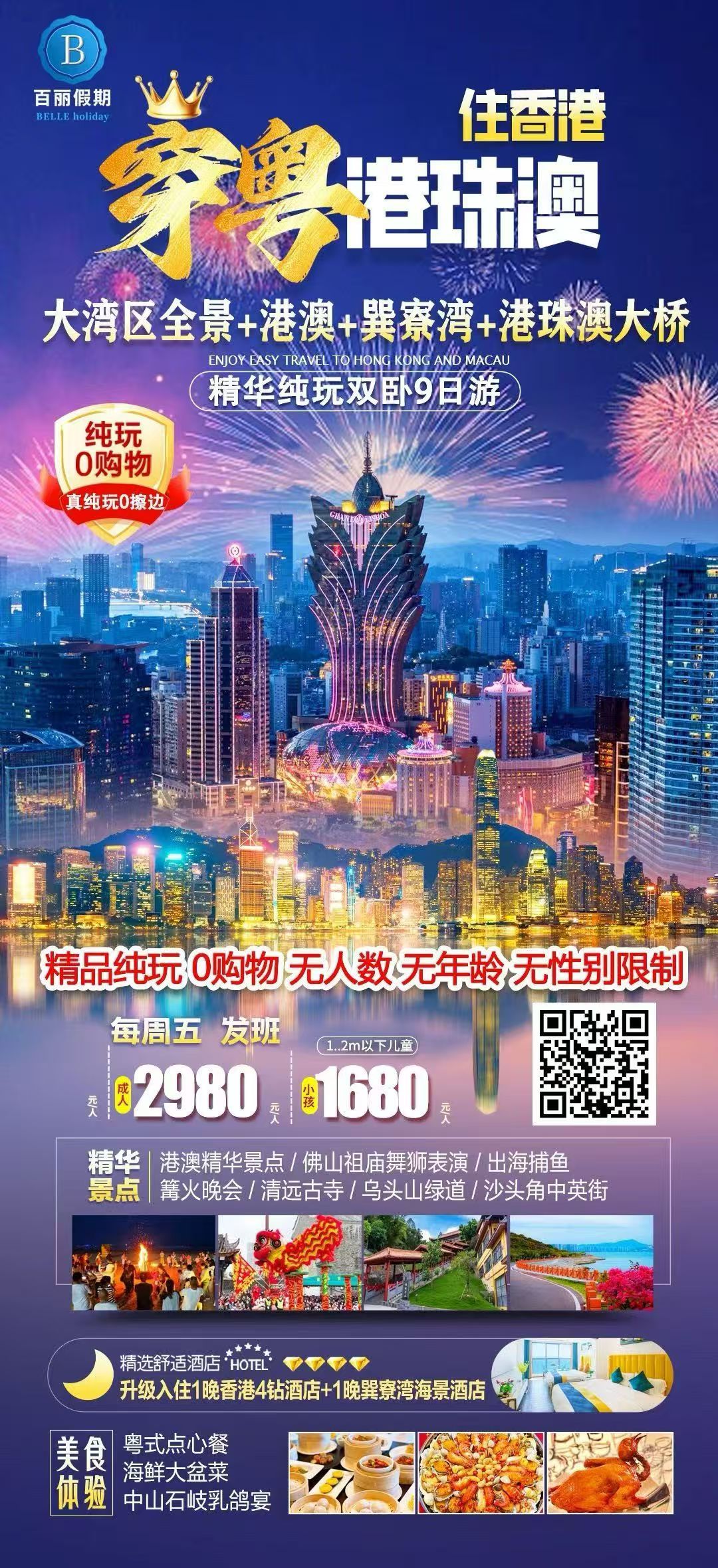 穿越港珠澳精华纯玩双卧9日游 2025-11-9 本文被阅读 4 次
