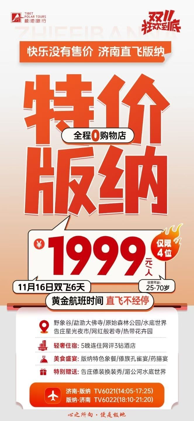 济南直飞版纳 特惠班双飞五日游 2025-11-12 本文被阅读 11 次