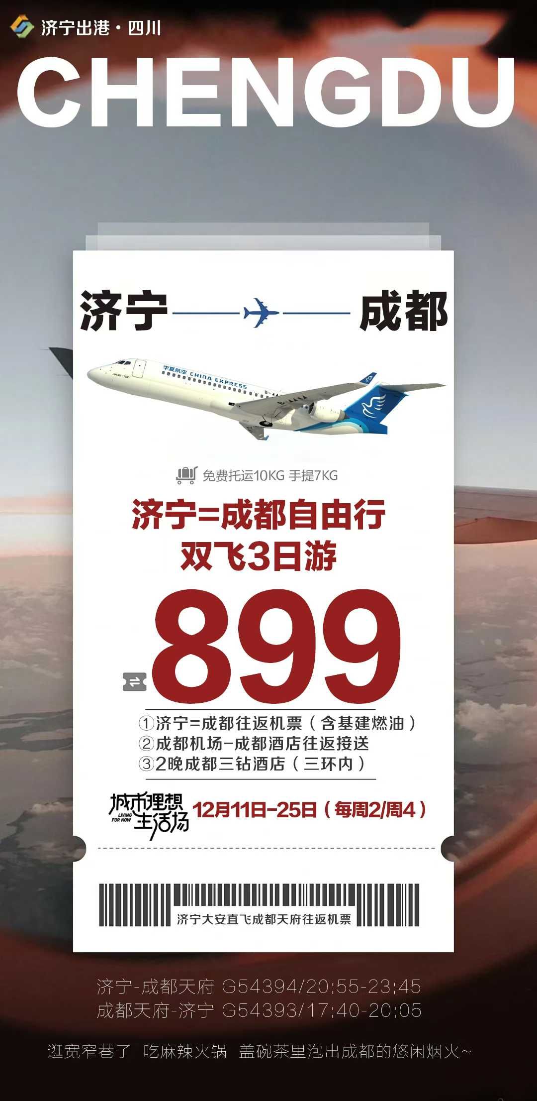 899济宁成都自由行双飞三日游 2025-12-10 本文被阅读 6 次
