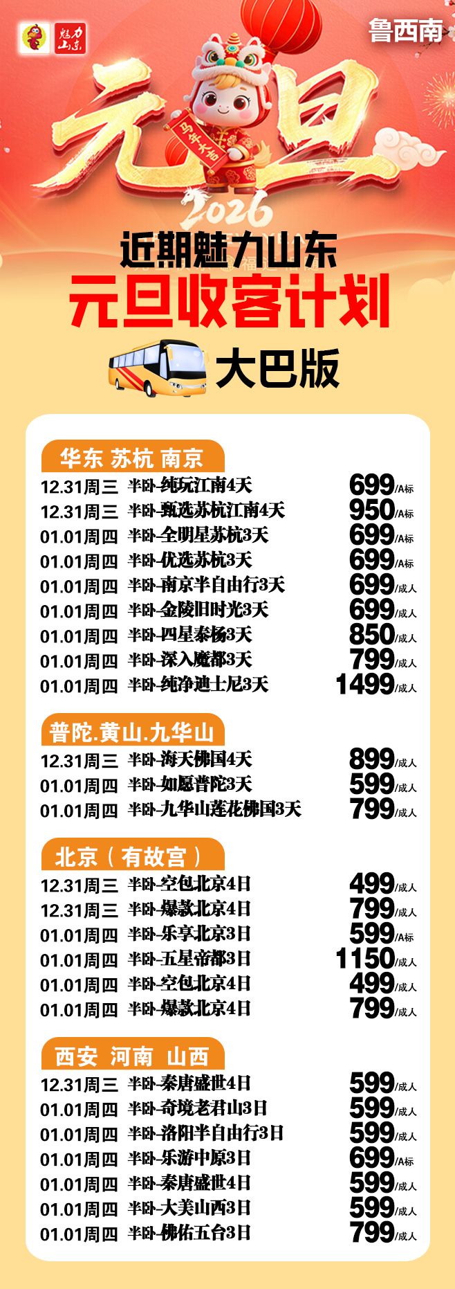 元旦中长线线路发班计划 2025-12-26 本文被阅读 3 次