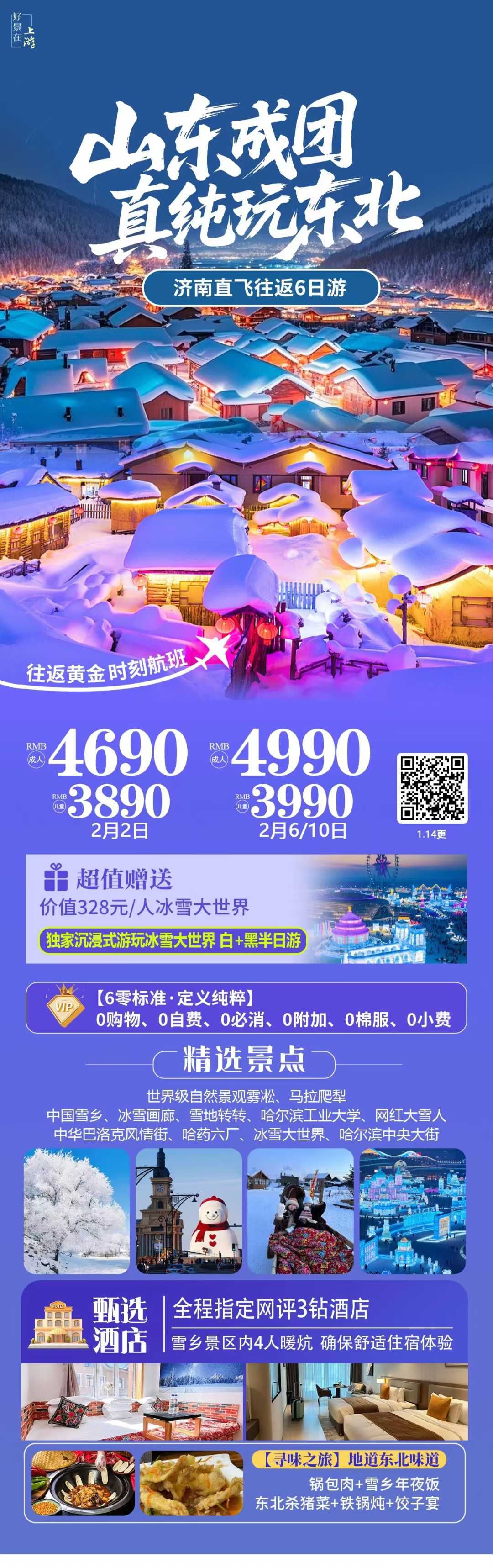 山东成团 ,真纯玩东北双飞六日游 2026-1-17 本文被阅读 7 次