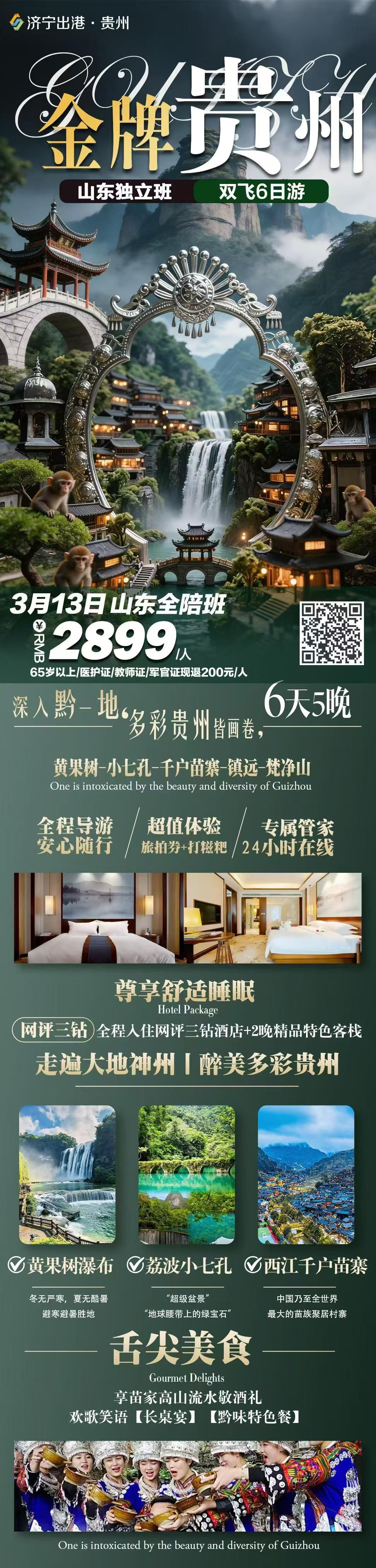 济宁成团全陪班贵州双飞六日游 2026-2-23 本文被阅读 9 次