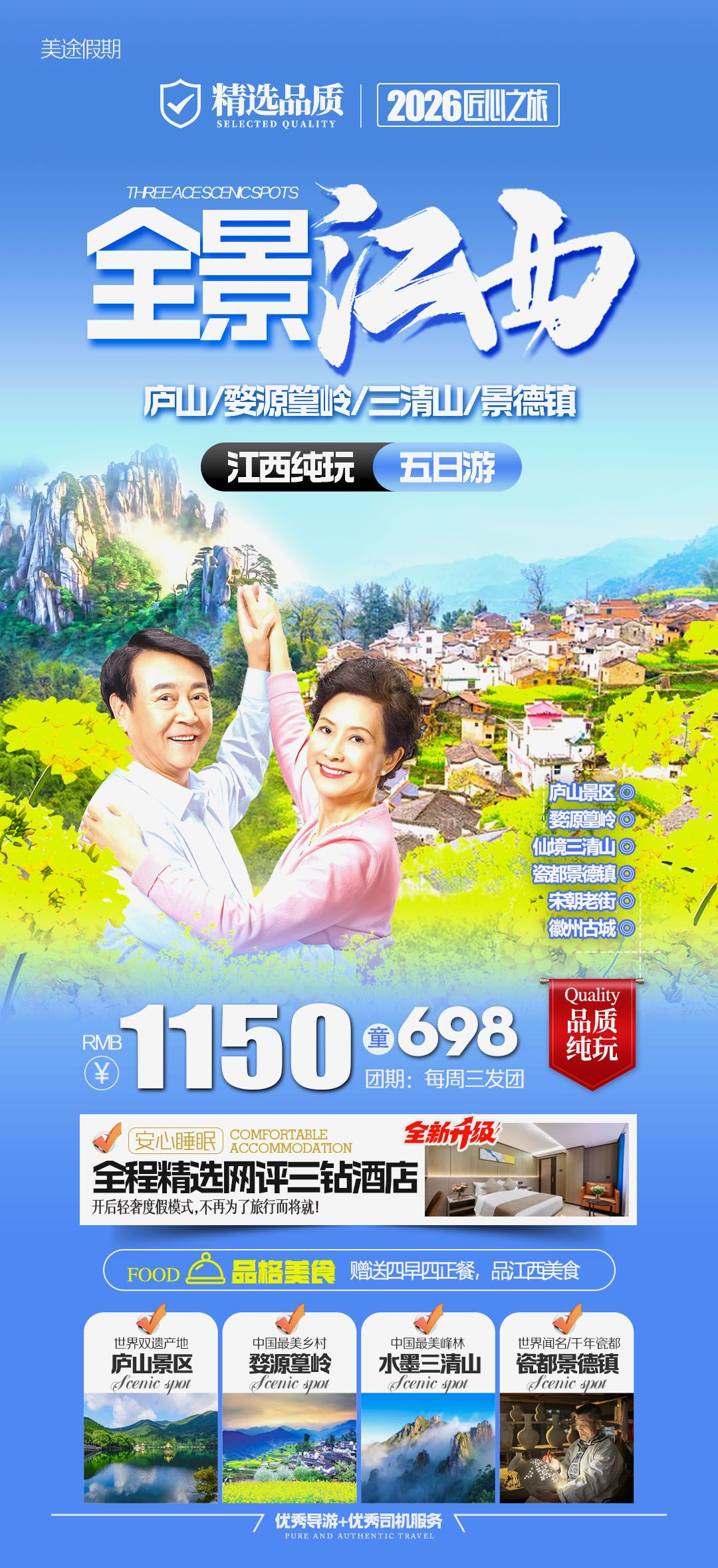 全景江西5日游全程纯玩0购物