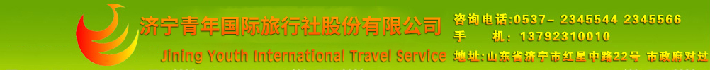 济宁青年国际旅行社 联系电话:0537-2345511 2345522 2345533 2345544 2345566 2345577 2345599 手机:13792310010 15705475533 联系人:焦超 微信:992345533 13792310010 网址 :www.jnqnlxs.com 地址:山东省济宁市红星中路22号(市政府对过)