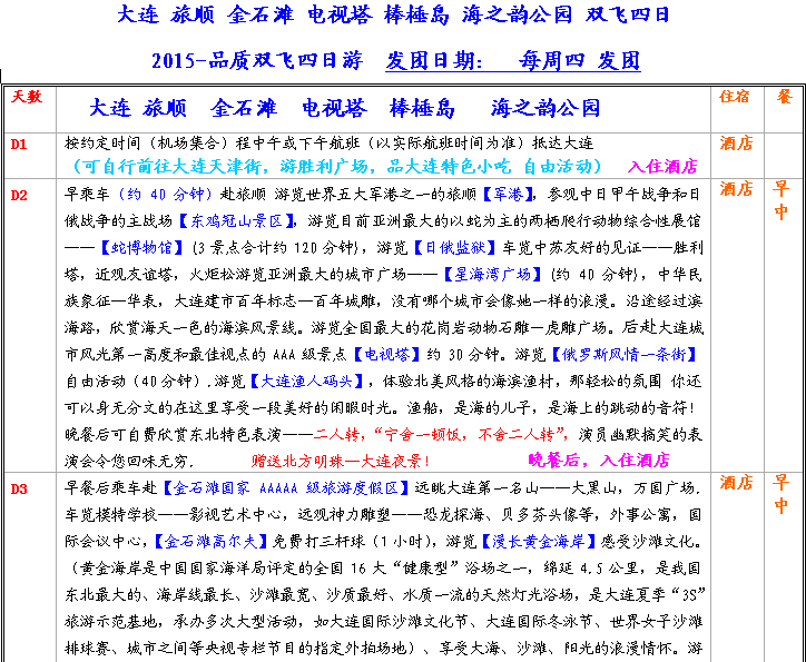 飞机A线:大连 旅顺 金石滩 电视塔 棒棰岛 海之韵公园 双飞四日游 2015-4-15 本文被阅读 4454 次