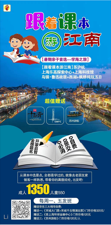 跟着课本游江南苏沪杭大巴纯玩5日游