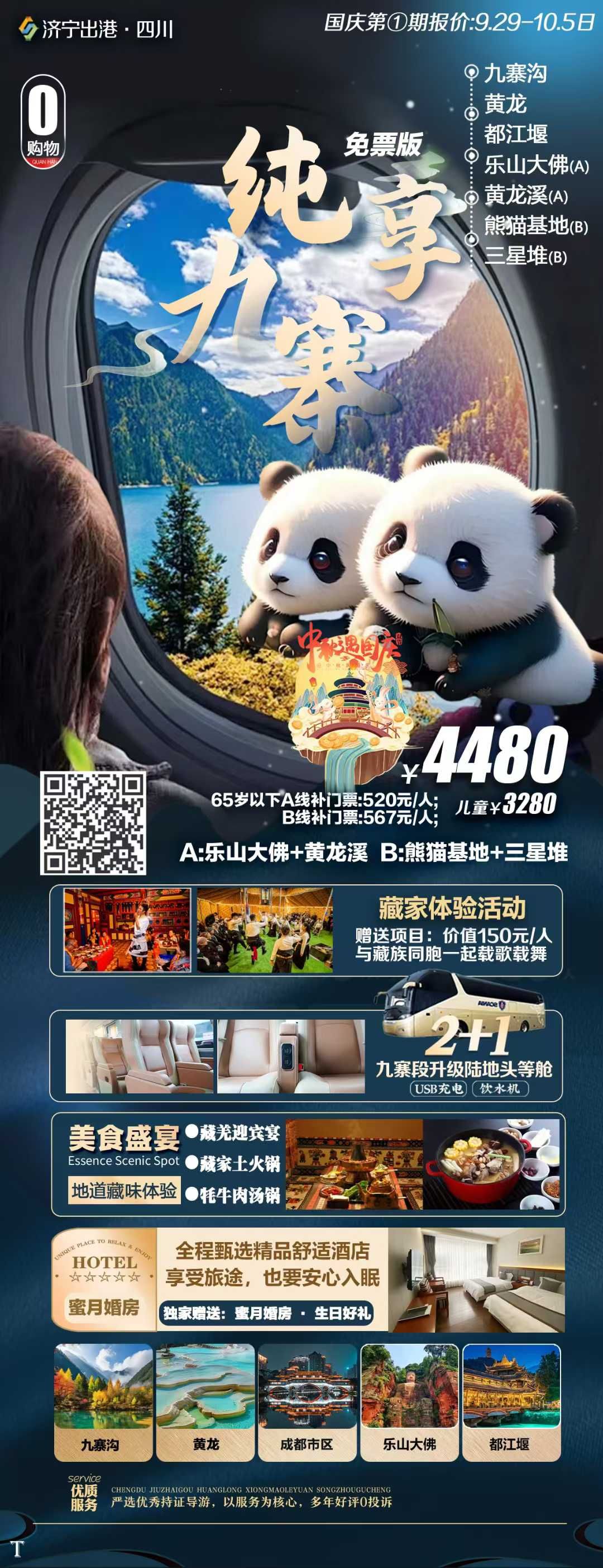 纯享九寨免票版双飞六日游 2025-9-24 本文被阅读 83 次