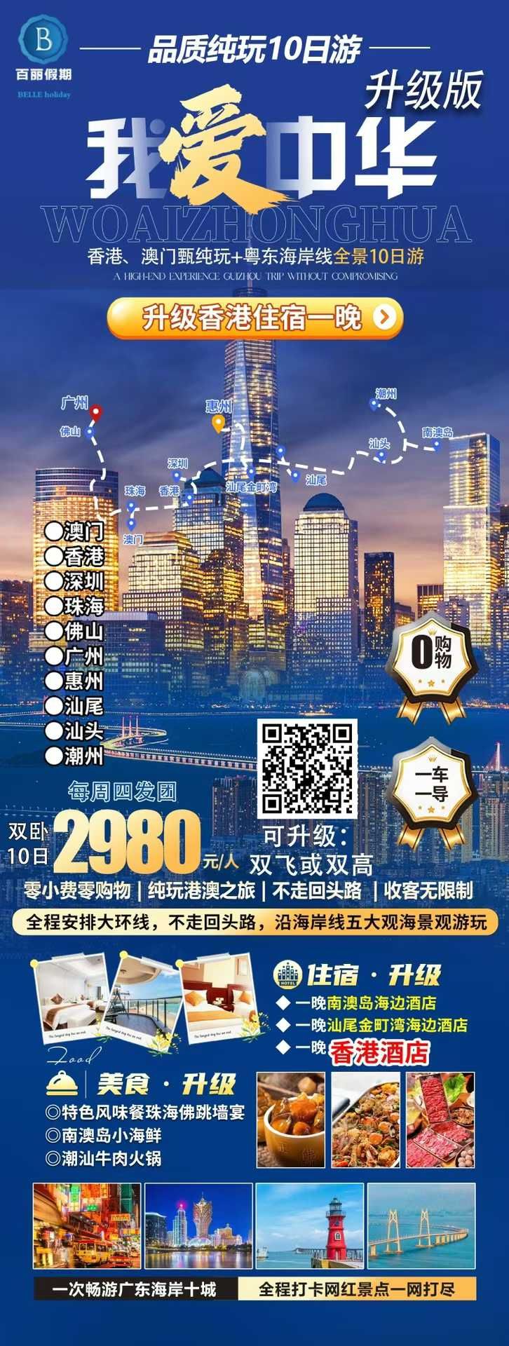 香港、澳门纯玩+粤东海岸线全景10日游 2025-10-26 本文被阅读 1 次