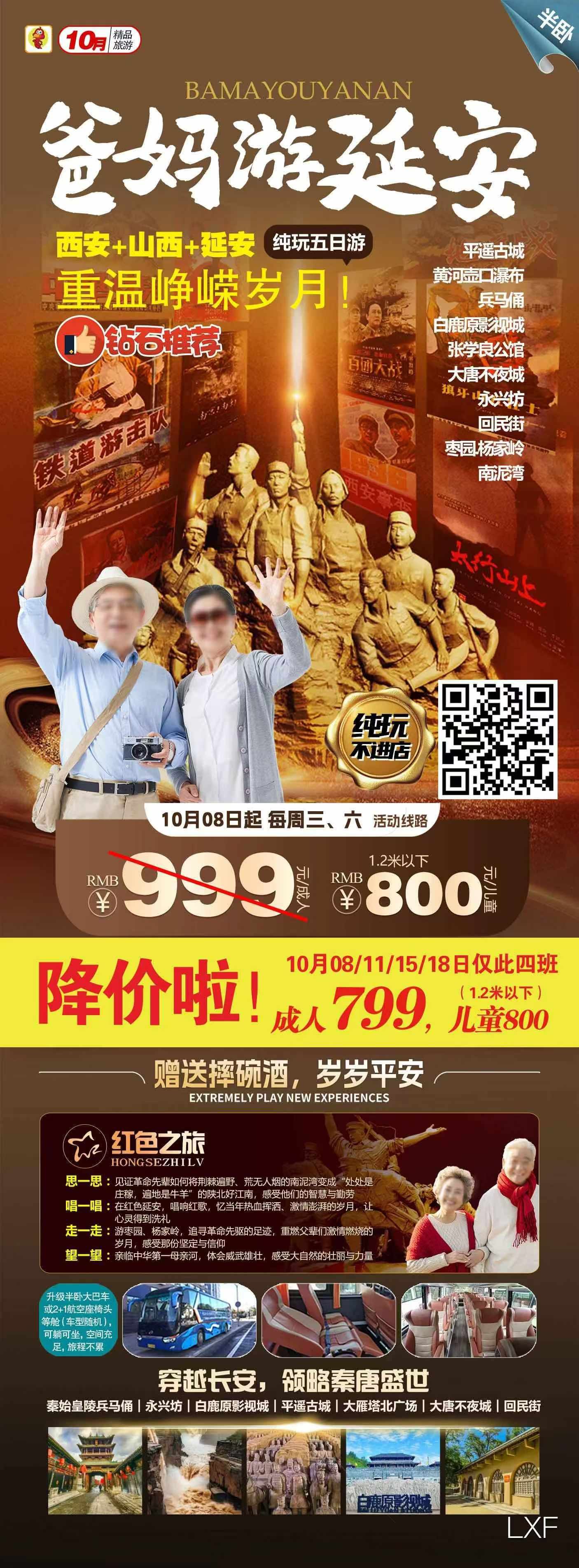 爸妈游延安西安半卧大巴五日游 2025-11-3 本文被阅读 1 次