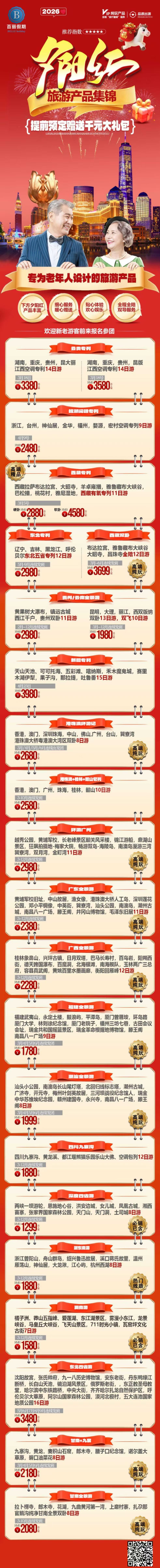 2026年寒假春节:出境旅游/国内旅游/团队定制/研学旅行/红色教育/会务服务/门票签证/夕阳红专列等
