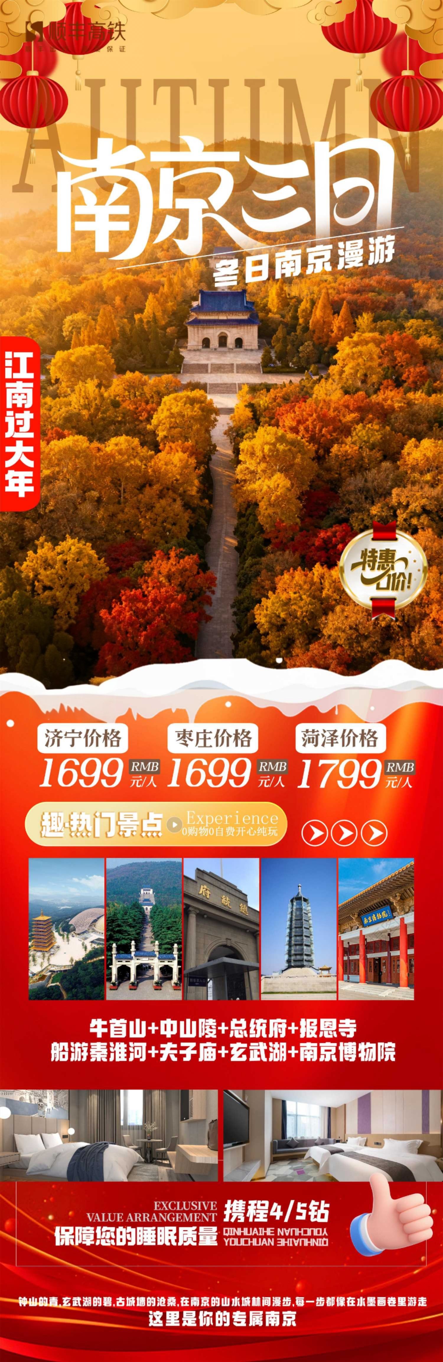 一口价南京高铁3日游