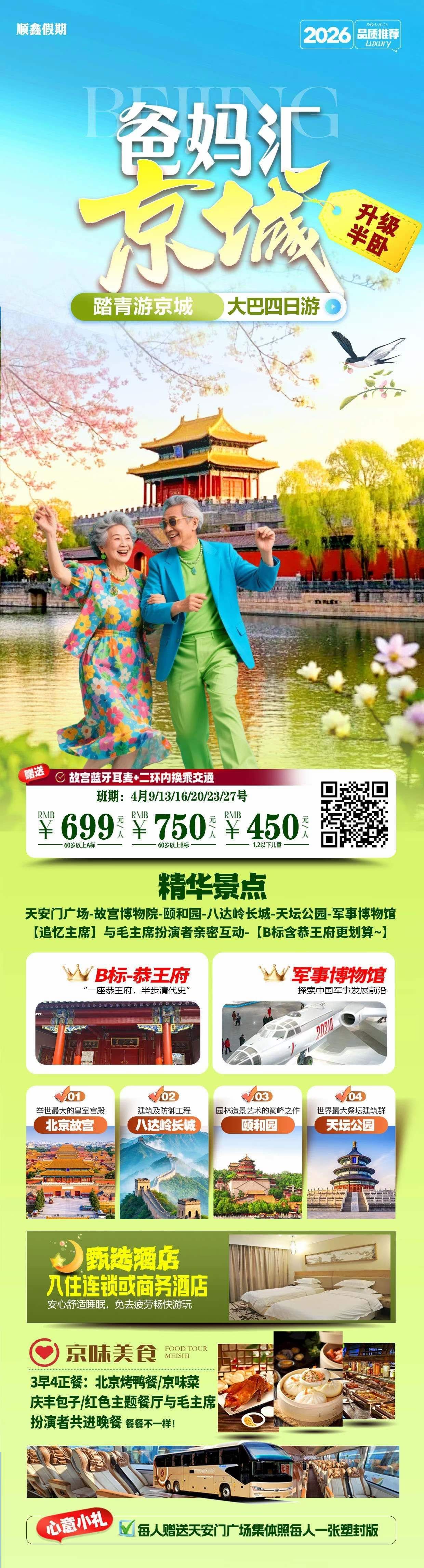 爸妈汇京城半卧大巴四日游 2026-4-11 本文被阅读 87 次